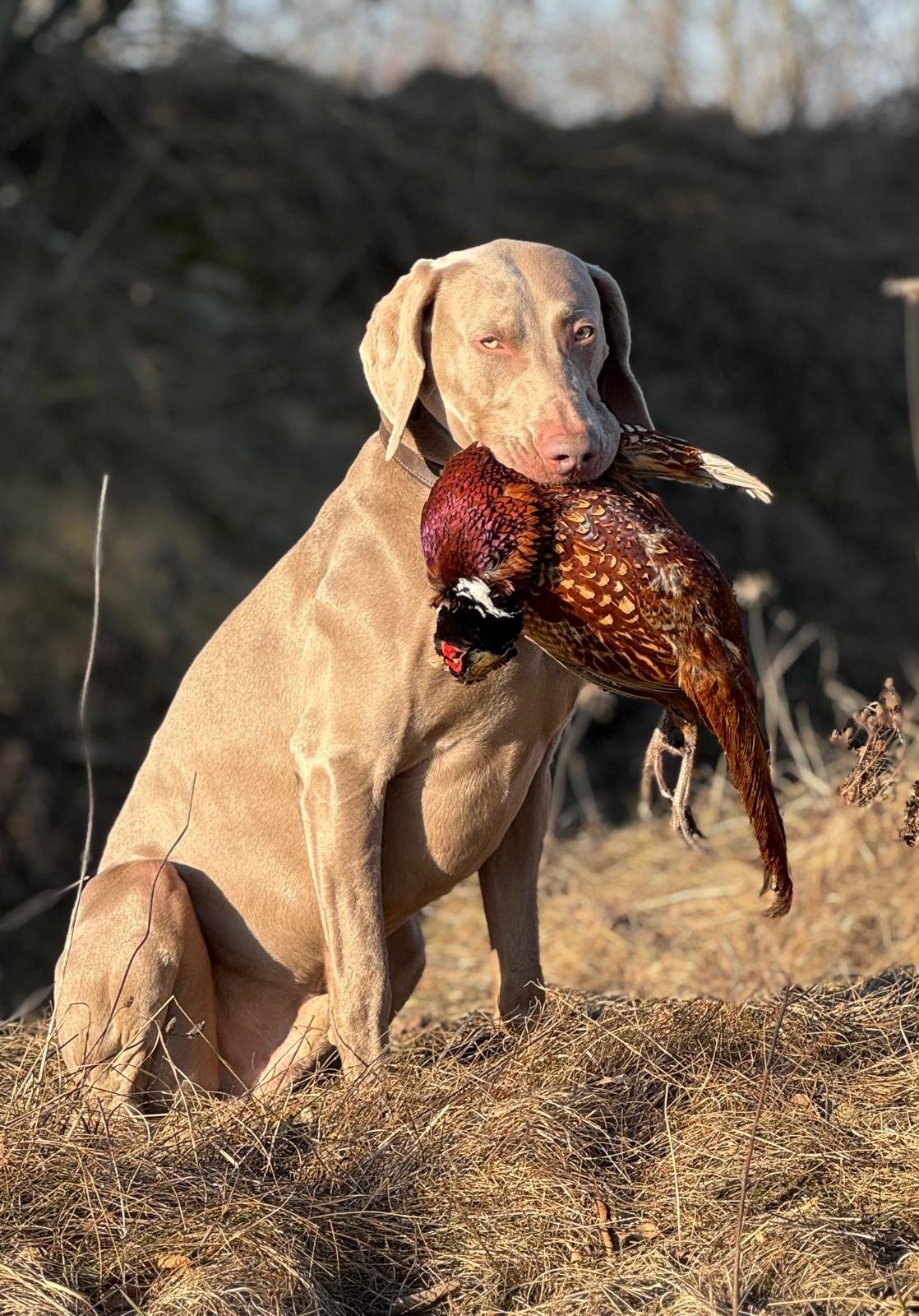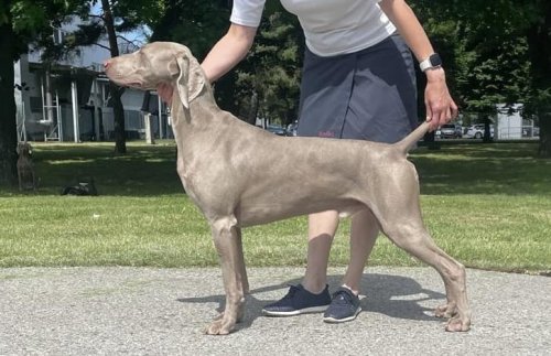 Niko is a male imported from England to the Czech Republic. He is newly bred and this litter will be his first in the Czech Republic. The English line and especially the Sireva line are dear to my heart, because my first Weimaraner Tyler, who was my "lifetime" dog, came from this line. He was distinguished by a nice exterior, silver coat color, a beautiful noble head, he was great in terms of character and working. That is why I am happy for the opportunity to use Niko in our breeding program and I believe that the combination with Zara will give very promising offspring in terms of both working, character and exterior.