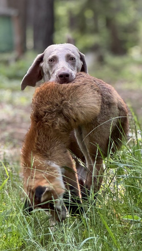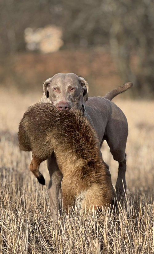 She excels mainly in scent work, she is an excellent tracker, we did not have to teach her bloodtrack and tails. She has been sniffing and checking scents since she was a puppy. She likes retrieving, she is also skilled in water, where she can swim for hours. She has completed all types of tests - autumn tests, water work, forest tests, bloodtracking tests and all-round tests. She was at second place in the bloodtracking tests. She excelled in all-round tests and received the title res. CACT - reserve waiting for a working champion. On hunts, she is very confident when retrieving game, she does not allow any dog to take her retrieve, the same when handing it over, she basically only brings the game to her master.